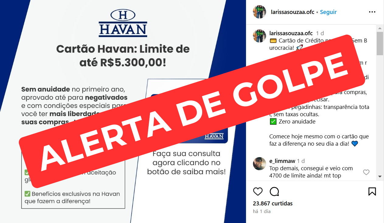 A Havan reforça que não oferece esse tipo de serviço e jamais cobra qualquer valor para a obtenção do Cartão Havan. A liberação do cartão ocorre exclusivamente nas lojas físicas, após análise de crédito.